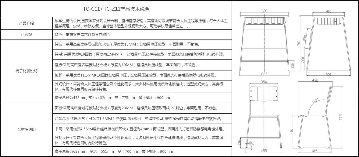 課桌椅TC-C11+TC-Z11